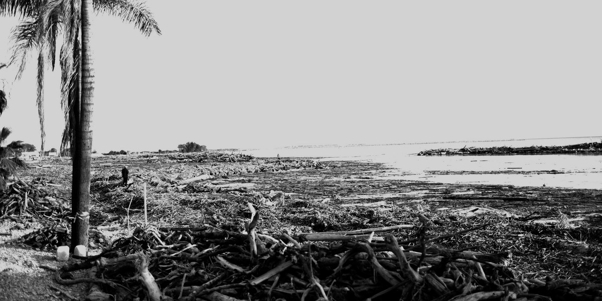 amas de troncs d’arbres emportés par les courants sont venus terminer
