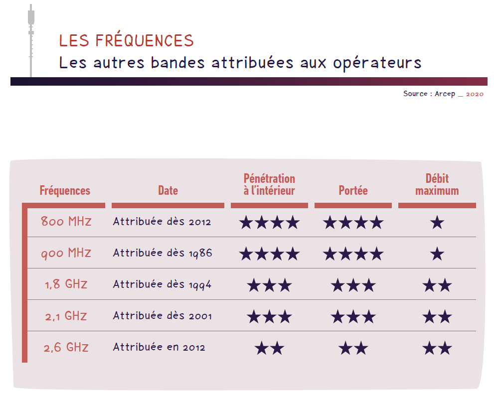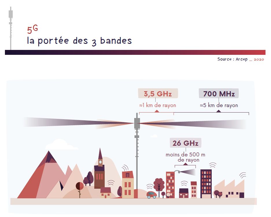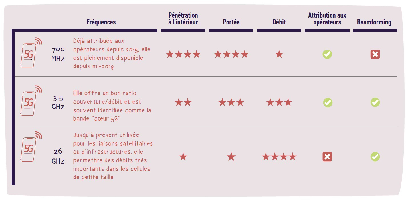 La 5G est déployée sur plusieurs bandes de fréquences.